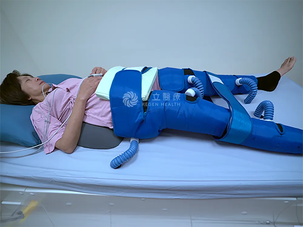 EECP體外反搏療法 是一種以氣壓裝置包覆下肢的非侵入治療,透過循環加壓、放鬆的節奏,模擬「有氧運動」的血液循環效應。