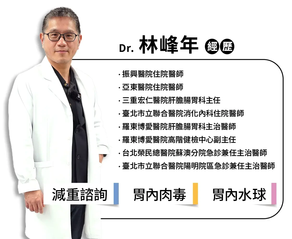 健立診所由肝膽腸胃專家林峰年醫師親自把關,從評估、施作到追蹤,全程監控安全與效果。